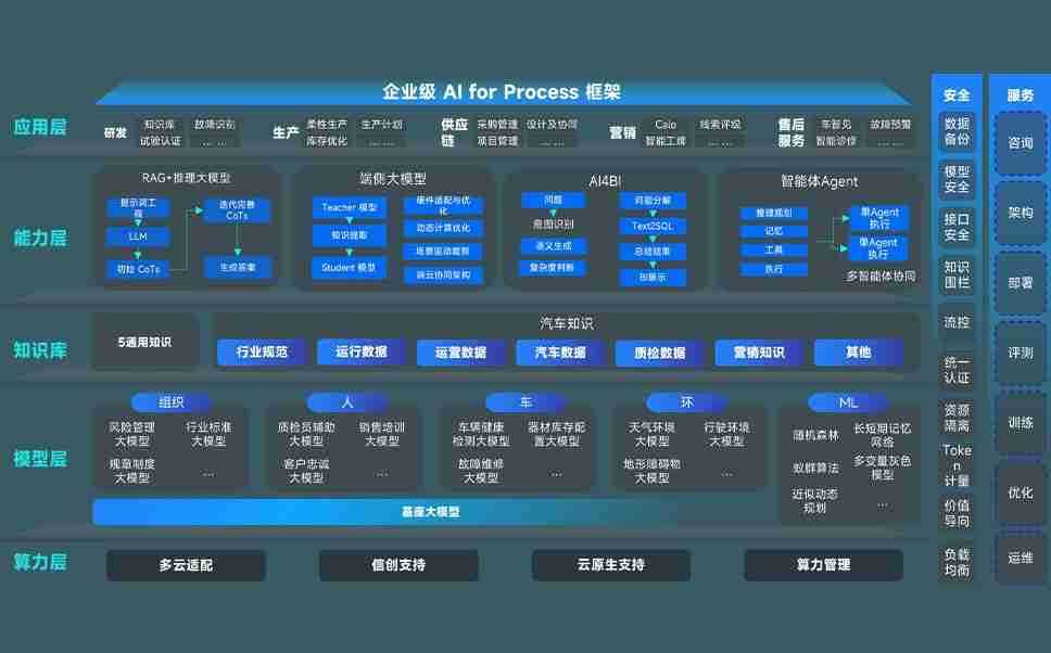 LEwin乐玩问学智车解决方案是一套基于AI技术的汽车行业智能化系统,,,覆盖从底层算力到顶层AI应用的全栈方案。。方案由算力层、、模型层和应用层组成:算力层,,方案支持多种一体机配置,,具备云端灵活部署、、、多云适配以及动态优化计算资源的能力;模型层,,LEwin乐玩问学平台版提供了企业级AI应用一站式构建与管理平台,,,,支持基于后训练强化技术的汽车企业专属模型的训练、、、评测和运营;应用层,,,LEwin乐玩问学DeepSeek版提供包括超级员工、、、、智能招采、、、、智能营销、、、、智能客服、、、、AI for BI等一系列解决方案,,,可助力汽车行业实现数字化转型,,,让管理更智能、、响应更敏捷。。。。